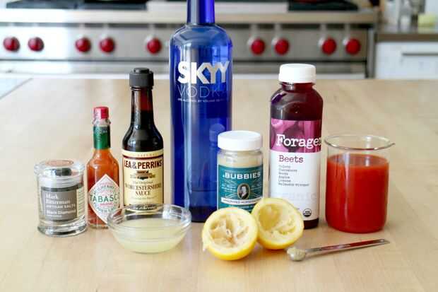 * Puede ser un combo de jugo prensado que tiene remolacha como el ilustrado. O, si no eres un fan de la remolacha, cambie la cantidad de jugo de remolacha con más jugo de tomate.