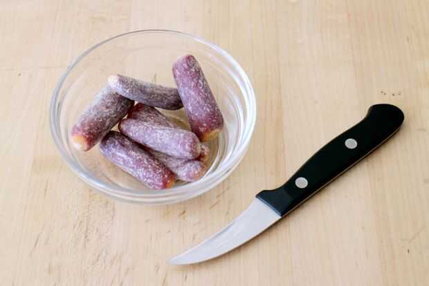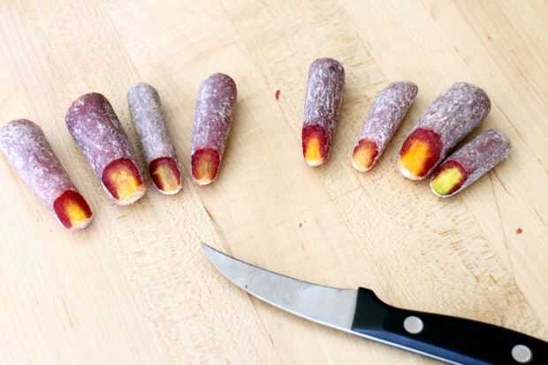 Después de la cosecha hacia fuera más 'dedos buscando zanahorias rojas, uso una vinculación cuchillo para corte/tallar una forma de uña en la punta de cada uno, como en la foto.