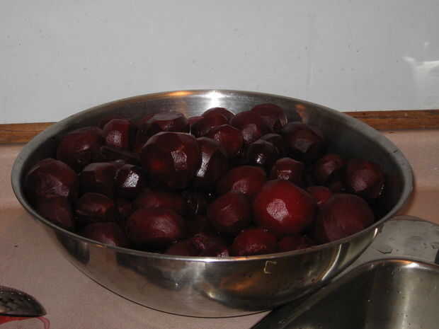 Si usted tiene una variedad de tamaños de remolachas ordenarlos según tamaño. Los de tamaño similar cocinar juntos. Los más grandes tardará un poco más para aflojar las pieles.