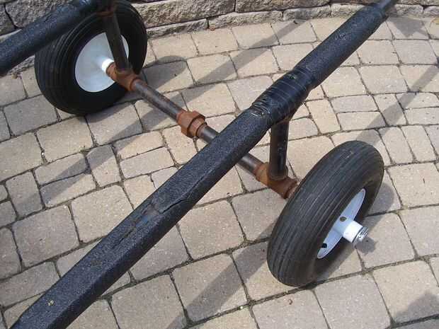 El eje es una varilla de 3/8" de acero con agujeros perforados en los extremos de los pasadores (con arandela) para mantener las ruedas.