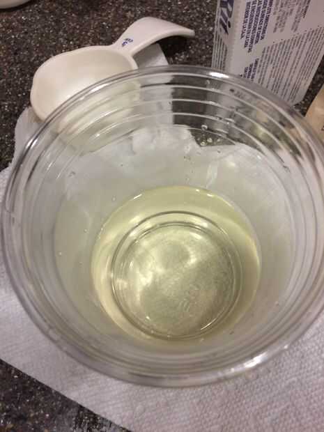 Calentar el agua y poner 3/4 taza en un vaso de plástico.