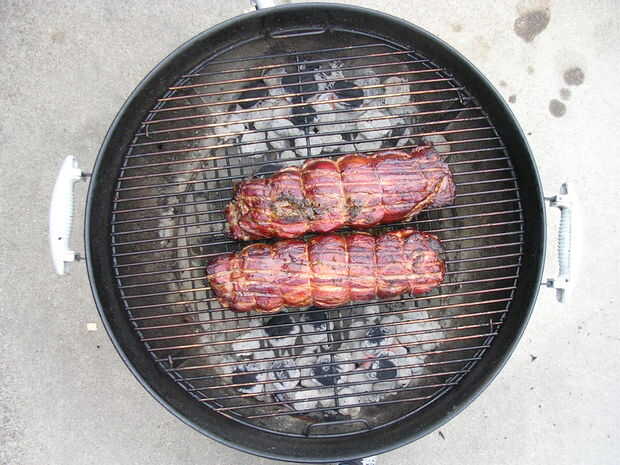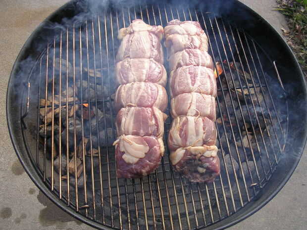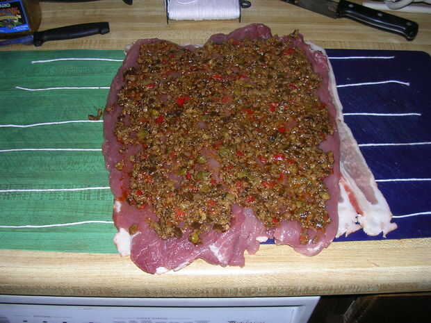 esto es una gran entrada que es muy fácil de hacer. El solomillo es "filete tenía" como un pez y luego una mezcla de tapenade (aceitunas machacadas y aceite de oliva) se extiende sobre el lomo y es enrollada, cubierto de tocino y a la parrilla. Se alimenta a aproximadamente 6 personas. Tiempo de preparación es de aproximadamente 20-30 minutos y tiempo de cocción es aproximadamente 1:15 en una parrilla de carbón.