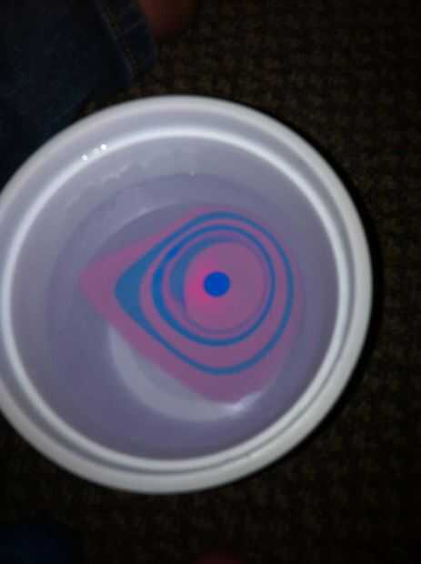 Lentamente Coloque una gota de tu primer color en el agua. Asegúrese de que no puedas para rápido como puede hundirse hasta el fondo. Repita con la otros colores una gota a la vez encima de la otra