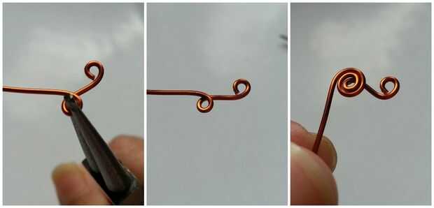 Hacer otro bucle enrollando el alambre en la dirección opuesta de la anterior, (mantener la distancia de 0,5 cm entre los lazos)