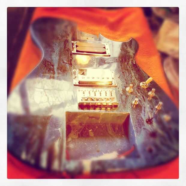 Remolino y el agua gotas pintura un cuerpo de guitarra (7 / 7 paso)