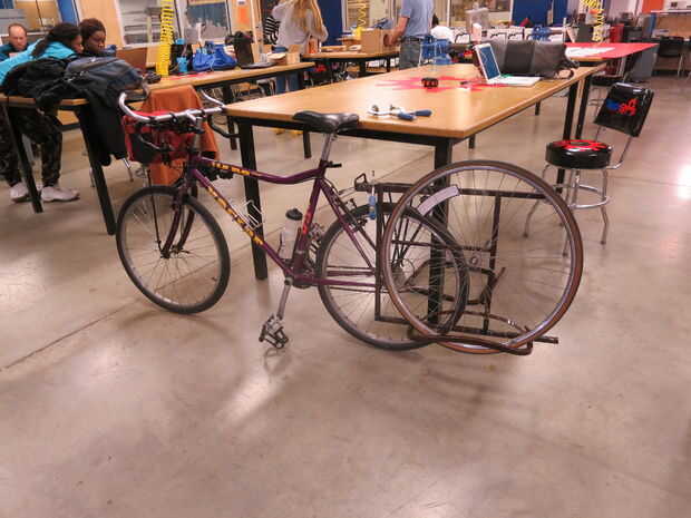 Es fundamental que la barra vertical del rack y el neumático de la bicicleta siendo remolcado son suficientemente lejos detrás no interfiere con el talón de la persona pedalea la bicicleta delantera. En los primeros intentos, la barra frontal era también más adelante, y el neumático de la bicicleta al final fue demasiado lejos.
