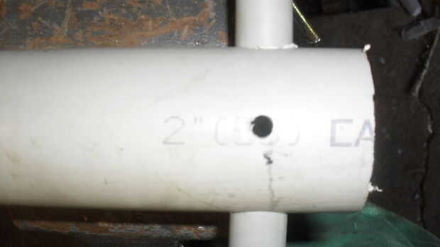 Siguiente encontré el centro donde el 2" y 1/2" se alinean y perforaron un agujero a través de él lo suficientemente grande como para permitir que mis 3" perno ir a través. Asegúrese de que la perforación de la parte trasera tho donde 5" se está pegando hacia fuera.