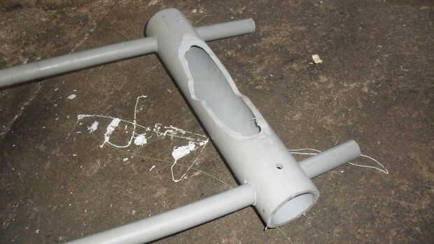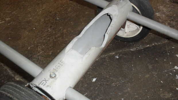 Así para mantener el kayak estable como un loco, que corte arboledas así que descansa muy bien y casi es acunado. Usted tiene algunas opciones que usted puede hacer. Lo que hice fue que tomé un molinillo a él. Simplemente haciendo una "V". ASEGÚRESE DE QUE NO CORTE A PROFUNDIDAD! Usted no debe preocuparse mucho acerca de la parte posterior ya que cuenta con el soporte de metal, pero si recortas la parte delantera a poca profundidad, a flexión mucho y tendrás que reemplazarlo y podría frotar demasiado el neumático. También puede utilizar cualquiera de las sierras mencionadas anteriormente o incluso una lijadora si quieres. Lo que funcione para usted. Fui rápido y había hecho un poco descuidado, pero funciona muy bien para que usted no tiene que preocuparse demasiado.