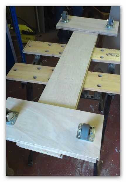 He añadido 8 cm a la longitud de los tirantes como los bastones necesitaría algo para sujetar a. La siguiente parte donde las piezas T (4 de - recuerda el sándwich) cada sección de T era 40 cm de largo. Una vez que donde todo cu estamos dispuestos hacia fuera para ver más o menos cómo se vería el carro - ver foto