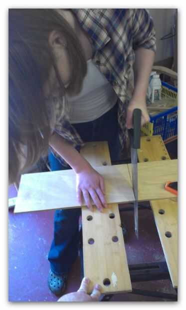 Para comenzar con Lauren encontró difícil de utilizar la sierra que explicó que algunas sierras pueden cortar en ambas direcciones, pero incluso si lo hizo fue más fácil que comenzar con para elevar la sierra apagado el material entre trazos - esto le permite construir un ritmo. Siendo la primera vez con una sierra dejarla tienen un descanso mientras que cortar algunas de las partes.