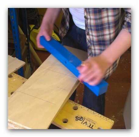 Marcando la última ruedas era más simple - acaba de poner la sección en T con los rectángulos en conformidad con un marcado ya hacia fuera y utilice un borde recto largo para marcar las posiciones necesarias en la nueva Junta Directiva.