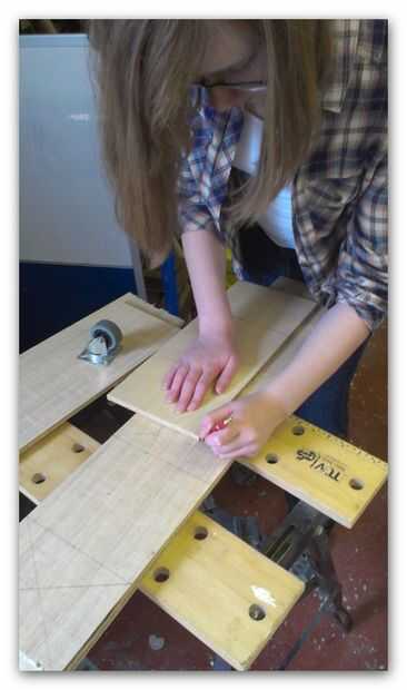 Llegué a Lauren para dibujar una 'X' (esquina a esquina) en cada uno de los rectángulos para marcar el centro. Entonces la posición de las ruedas en una de las marcas de 'X' y una vez que feliz que se centraba en el X dibujaba alrededor de la placa base y había marcada la posición de los agujeros.