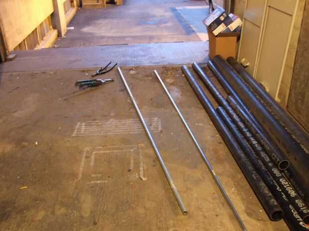 Una pieza de conducto más fino, también de acero. Esto es para hacer una llave o dos