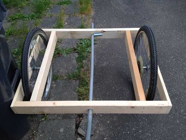 este acoplado de la bici puede ser utilizado para transporte de materiales pesados o muy largos. También puede ser utilizado como carretilla de mano.Después de 2 años de uso, el enganche, los postes de conexión y los rodamientos se modificaron que ha