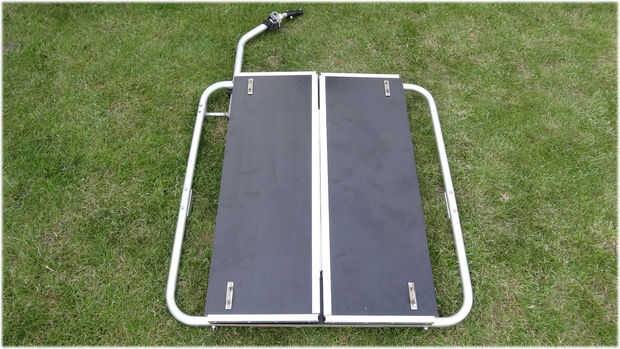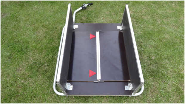 este acoplado de la bici puede ser utilizado para transporte de materiales pesados o muy largos. También puede ser utilizado como carretilla de mano.Después de 2 años de uso, el enganche, los postes de conexión y los rodamientos se modificaron que ha