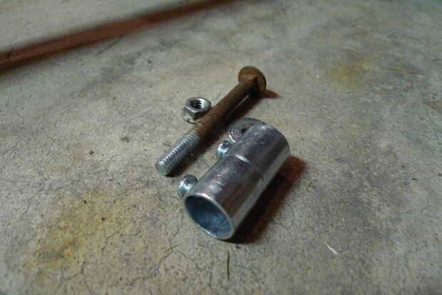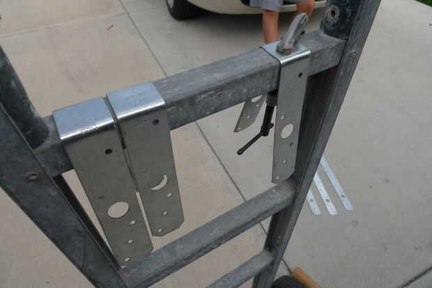 construí este acoplado de la bici de un viejo cochecito para correr.Paso 1: El mecanismo de enganche Mecanismo de 3/4" plano stock y una rápida desconexión tipo 3/8-24 fino estándar del hilo de rosca rótula y extremo de barra de enganche. http://www.