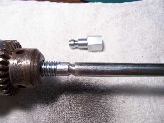 Usando el conector rápido macho montaje como "ojo mirado" y patrón micrometered mano, encienda el taladro y el uso de la herramienta giratoria para cortar el perfil de medio círculo de la hendidura en el perno como gira.