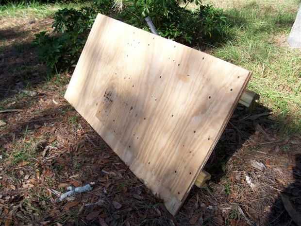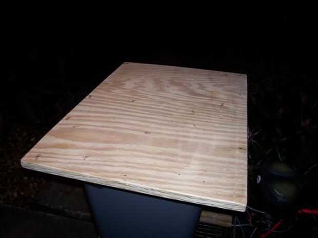 Para construir el trailer cama simplemente utilice tornillos de adhesivo y paneles de yeso de construcción para mantener las dos piezas de 21"x" 32 "1/2" madera recortas juntos.