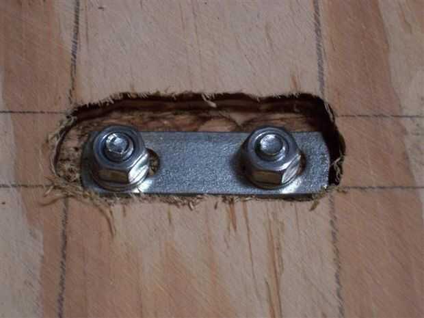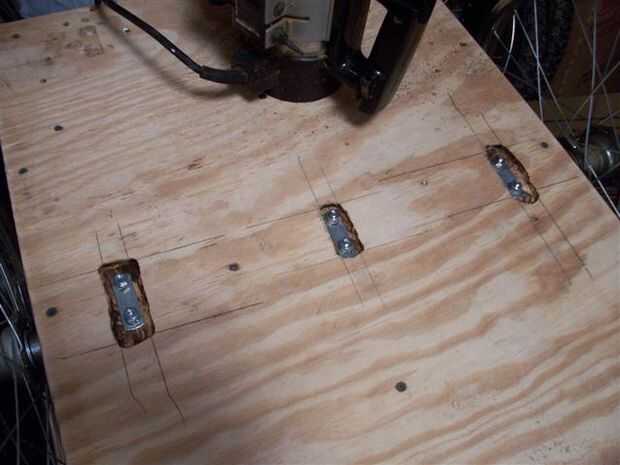 Si tus los pernos en u tiempo suficiente simplemente ubique el centro de la longitud de la madera contrachapada cortar y taladrar los agujeros para 1/2" perno en u se con orificios de 3/4" abrazaderas cerca de 3 pulgadas de los lados. Si tus los pernos en u no son largos bastante entonces o hacer recortes en una hoja de madera contrachapada como huecos para los pernos en u, abarcan la arandela y las tuercas o utilizar un router después de que las piezas se pegan para hacer la receses.