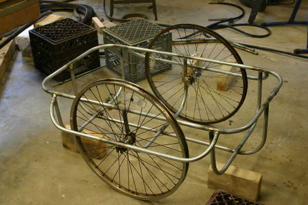 Los planes en el sitio web de la gente de Pedal da instrucciones paso a paso, así que no intento repetir aquí. Solo espero que mis fotos pueden ayudar a aquellos en el edificio o el proceso de diseño. Había perdido mis fotos del remolque en uso, pero hice un fondo de tablero de partícula con las ranuras de corte de las costillas. Este chico lo un montón de cosas (y personas), me encanta!