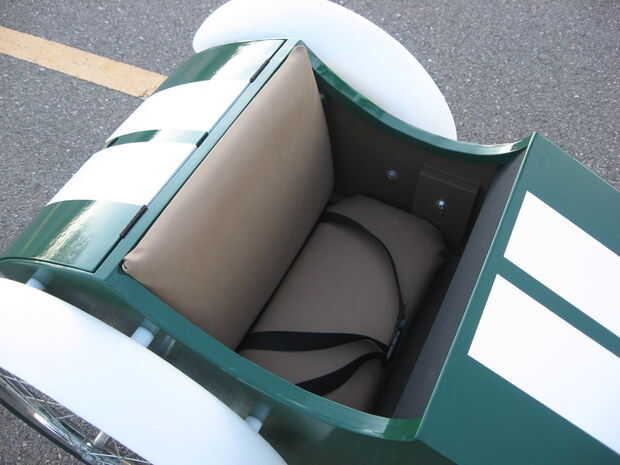 Tomó unos meses para completar, trabajando encendido y apagado. Fue pintado para que coincida con una antigua 10 velocidades que restaurado para mi esposa y tapizado de asientos, ruedas cubiertas y un tronco para llevar comida para la familia.
