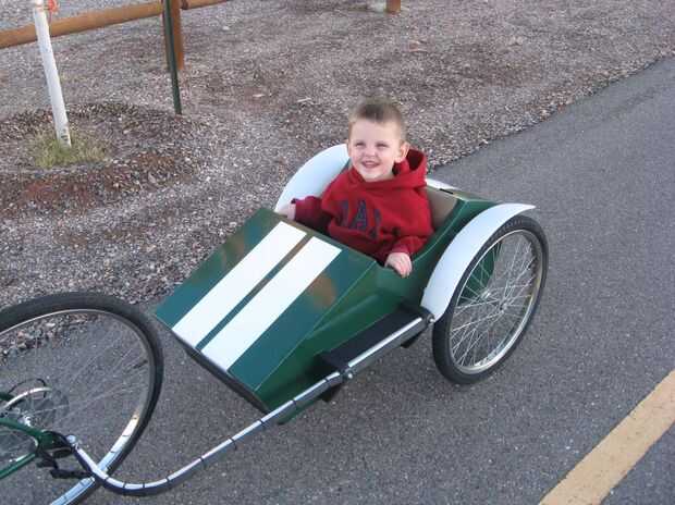 Este diseño de tragante abierto funciona bien para la edad de mi hijo, pero las técnicas que utiliza para hacer esto podrían aplicarse para hacer un remolque similar de niño en casi cualquier forma, como para dar cabida a un bebé dormido, o a incluyen una especie de dosel, por ejemplo.