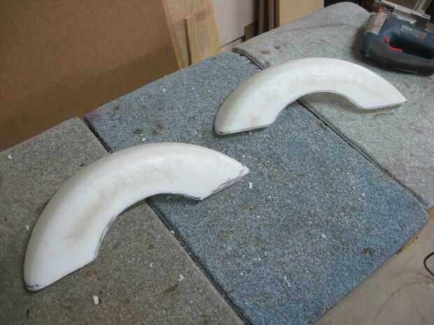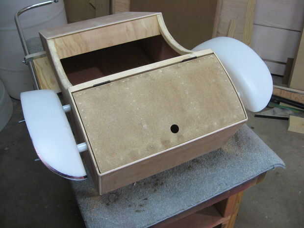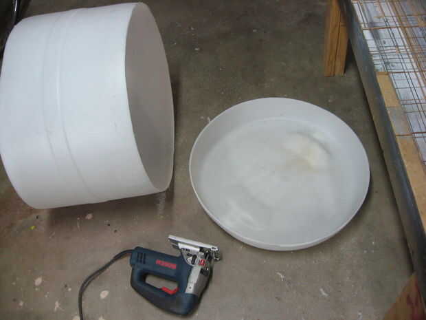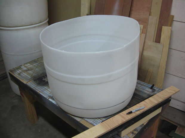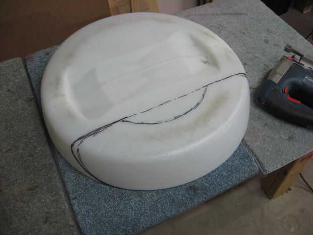 Las cubiertas de la rueda fueron hechas desde el fondo de un viejo barril plástico de 55 galones. Estas formas fueron cortar utilizando una sierra de calar y Unidas con pernos de 1/4", junto con algunos espaciadores de nylon.