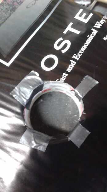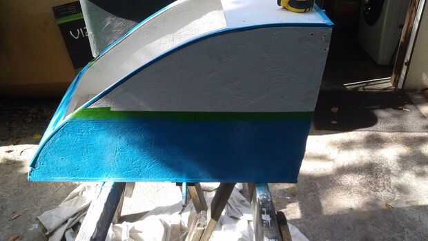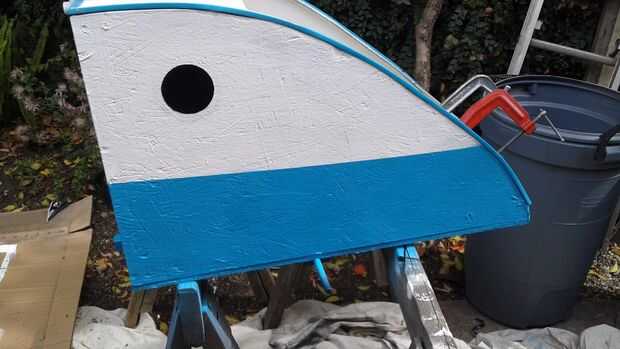 Cinta de la línea para el 2 º color de pintura. Un círculo negro fue pintado para una ventana pequeña. Después de la pintura ha secado tacto según sea necesario.