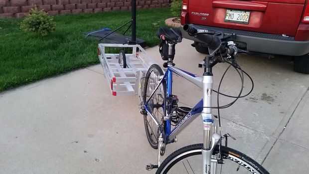 quería construir un remolque de bicicleta funcional multi que por supuesto era peso ligero. Tomé un viejo carrito de bolsa de golf por $2 en la tienda. Utilicé algunas otras piezas de repuesto colocación alrededor y obtuve un resultado muy útil. Aquí