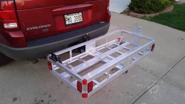 El soporte en el otro extremo de la bandeja de carga es una parte del montaje del enganche en la parte inferior de la bandeja de carga. La bandeja de carga de la imagen muestra una diapositiva de enganche completo - esto se corta en tres pedazos. Dos montan en la bandeja de carga para montar en la barra de enganche. La tercera pieza utiliza del Monte el Bob Trailer de la bifurcación.
