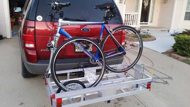 Este es el trailer de carga como un trailer mono rueda bicicleta montado en la barra de enganche de remolque con una bicicleta que se adjunta. Hay espacio para el engranaje. Saque la moto y se puede acceder a la puerta trasera del coche. Carga y van y todavía tienes espacio en el coche.