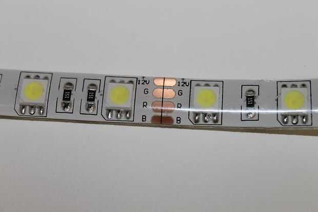 Las tiras de la luz no podrían ser más fáciles de cortar. Buscar los puntos de corte (indicados por unas tijeras y lo cobre echó a un lado doble). Hacer un corte limpio por el centro. Será necesario "pelar" la parte posterior Impermeabilización para exponer las conexiones. Usé mi cuchilla exacto y corte cuidadosamente hasta que sentí que había llegado a la franja. Entonces empujé la hoja hacia el final de la tira, y la impermeabilización simplemente salió. Tenga cuidado de no cortar la tira o raspar los puntos sensibles.