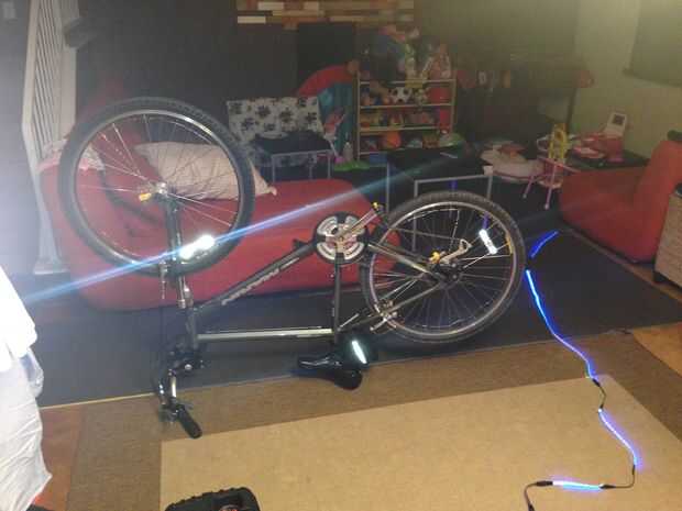 Una vez que el filamento fue completado agregué el Velcro y conectado a la moto. Corté 2" en la mitad, entonces otra vez una vez más hacer 1/2' tiras de velcro alrededor de 12" de longitud. Esto les hizo un poco más grande que el filamento (que está muy bien) y fácil de manejar las tiras longitudinalmente para poder añadir y cortar cuando sea necesario. Si estaba cansado de nada utilizaría las bridas para asegurarse de que no pasan en cualquier lugar. Por último enchufarlo para asegurarse de que usted no golpear nada suelto durante la instalación.