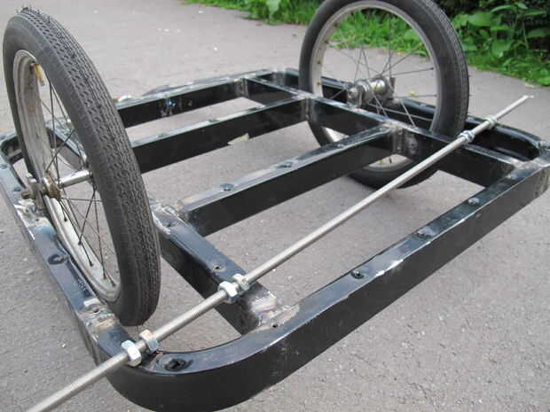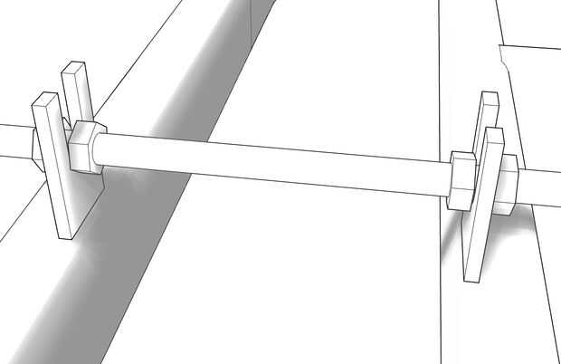 Los resaltos deben permanecer alineados juntos y con la orientación del marco, mientras se suelda. La mejor manera de hacerlo es apretando entre las tuercas a lo largo de una barra de metal roscada, posiblemente con el mismo diámetro de la barra de las ruedas.