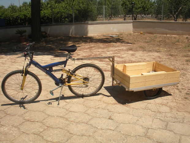 este es mi primer trailer, me inspiré en varios acoplados encontrados en Instructables, recogiendo lo mejor de todos ellos. He utilizado un perfil de aluminio de la esquina, anchura de 40x40mm (1,57 en) y 2mm de espesor (0,07 en) totalmente unos 8 metros, soportes de una tubería cuadrada de aluminio (40 mm.), tubo cuadrado de hierro (30x30mm), tropicalizada, remaches, algunos tornillos y tuercas. Luego necesité 2 16'' delantera ruedas, granos (no importa el grosor), tornillos.