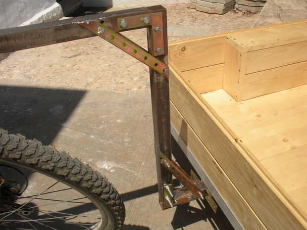 Introduzca el tubo de hierro en el tubo de aluminio de unos 50cm, luego taladre y agregar tornillos de paso. Esto arreglará la barra de remolque para el marco. Si hay un pequeño juego entre los dos tubos, no es un gran problema, pero si desea puede agregar algunos de calibre entre ellas y luego añadir tornillos, tanto en el eje vertical como en el eje horizontal.