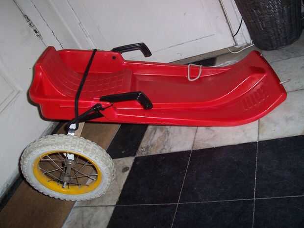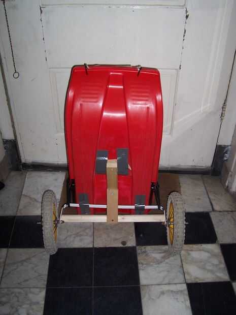 Es una buena idea no se dañe el trineo, o destruir de cualquier otra manera. Es divertido para andar en trineo. Dependiendo de la fuerza de su cinta, puede añadir otro método de fijación. Utilicé una cuerda elástica con ganchos (ver imagen), es útil para colocar cosas en su bicicleta. También, usted puede bajar y no destruir su trineo.