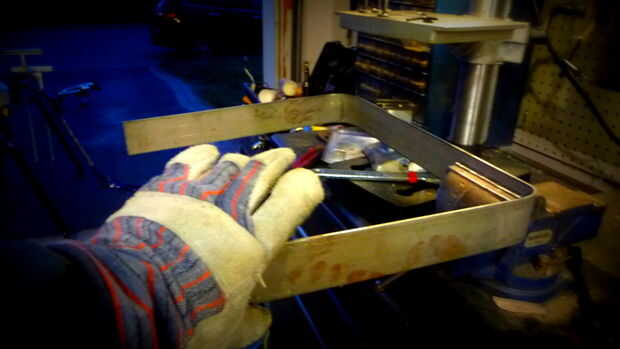 Doblar el plano acero simplemente puse las piezas de acero en un vicio y tiró sobre ellos; después de medir cuidado por supuesto.
