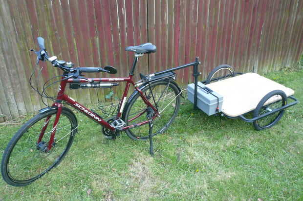 ¿Si acabo de ver el video su pregunta probablemente, Cuánto puedo yo realmente remolcar con bicicleta? Bien la empresa www.bikesatwork.com vende carga remolques de bicicleta y tiene algunas referencias gran en transportar artículos grandes en bicicletas. Compruebe hacia fuera el Cuánto puedo transportar? Página de una calculadora de peso de remolque. Afirman que ".. .most personas cómodamente pueden tirar 300 LB (137 kg) con un remolque de bicicleta y carga típica de la montaña..." También puedes ver estos enlaces para bicicleta engranajes y asesoramiento, Carga acarreo en bicicleta no he comprado nada de esta compañía en movimiento pero de la información que dan y las fotografías de sus acoplados en acción creo que venden un buen producto, pero solo es un poco caro.