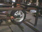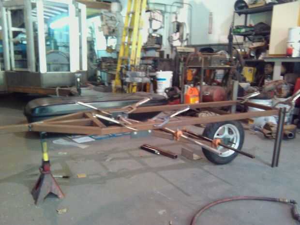 Después de 5 años y unos pocos miles de millas decidí darle mi remolque de moto con ruedas mono (sola rueda) una revisión.Aquí tenemos la el montaje de la unidad de suspensión y rueda, incluyendo algunos refuerzo de la viga transversal (sección de la