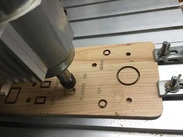 Una vez hecha las letras cambiar a un poco estriado de 1/8 a áspero hacia fuera los agujeros. Puse mi profundidad a.25 y mi material es.33 así no cortar a través. He probado usando fichas y una tabla de sacrificio pero el tiempo extra no me atraen. Algo zip los pedazos más adelante con mi Dremel.