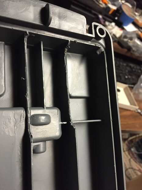Cuando se ha hecho no cierra la tapa. Resultó el remolque conectores bisagra fue demasiado alto aproximadamente 1/8 de pulgada. Fijo que con una Dremel y un poco de escofina de energía...