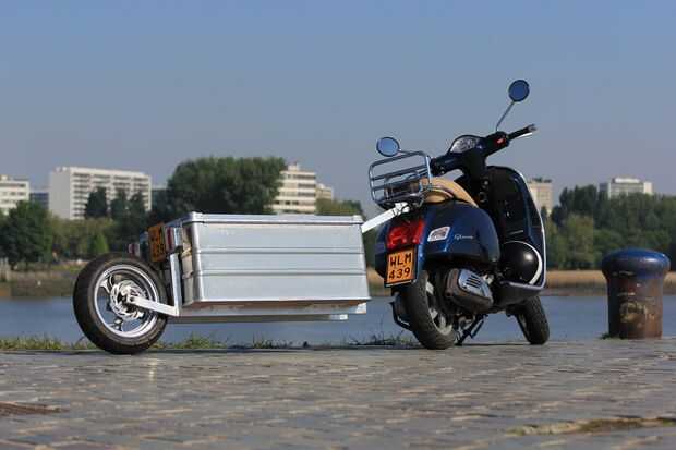 Después de ver algunos ejemplos de la solo-rueda de trailers para motos y scooters, decidí hacer un remolque multiusos para mi Vespa
