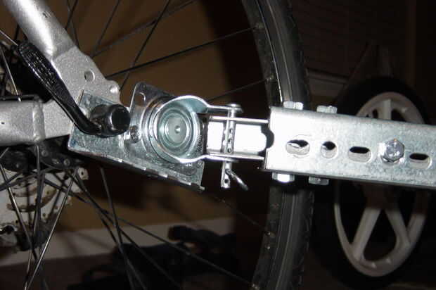 Estas dos piezas se aniden y el perno hasta el final de la lengua. Mermelada corta arandelas entre la lengüeta y el acoplador de modo que el acoplador se ajusta dentro del receptor de la rueda rueda, pero no firmemente, como un pequeño juego es bueno aquí. Esto debe tomar unos 14 arandelas corte total, pero depende del lado de la rueda y las arandelas.