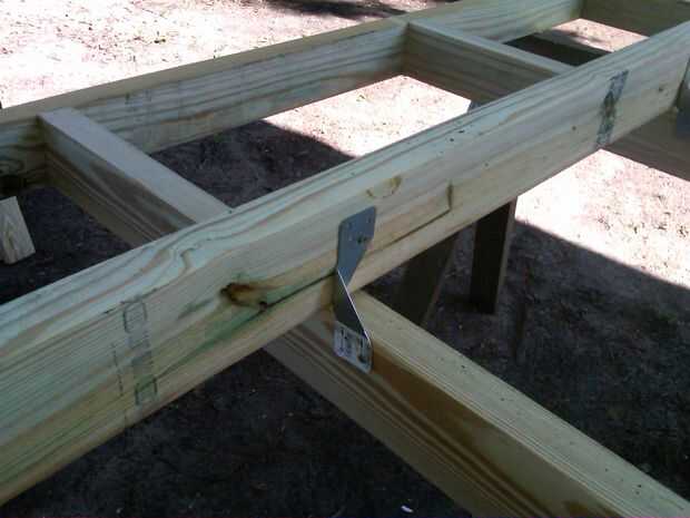 Le sugiero que alternan las ubicaciones de los lazos de la viga. Yo también "dedo del pie clavado" un 2-1/2" cubierta tornillo en cada vigueta cruzada así.