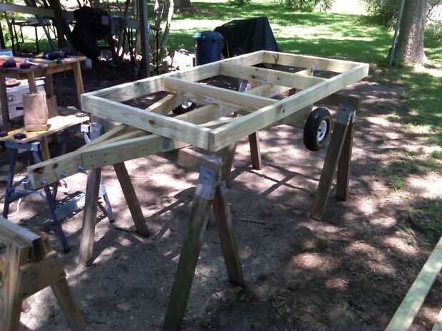 Unistrut es ranurado galvanizado y disponibles en los almacenes principales de suministro eléctrico. Es la forma más sencilla que pude subir con para montar el eje. Perforó cinco agujeros espaciados a lo largo de su longitud. Puse el eje montado + las ruedas del eje montar Junta, entonces cubrieron con el puntal uni y usan 2-1/2" tornillos para fijar.