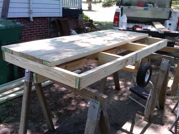 Recomiendo montar el frente, cortar los cuatro rieles y montar la parte trasera. Utilicé 2 x 4 en el exterior de la espalda, y este es un buen momento para ponerlos, como entonces hará más fácil precisamente cortar y montar los soportes verticales de lado.