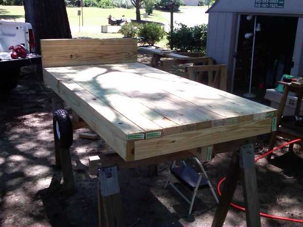 Utilizar el 2 x 10 para hacer un tablero frontal de la parte delantera y utilizará el resto de la pieza de 8 pies para la puerta trasera.