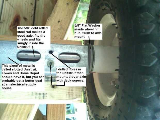 También he tenido un pedido o dos para más detalles sobre cómo había montado las ruedas y ejes. He añadido más fotos.