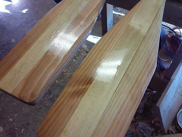 Gran medida cubra todas las superficies una vez con la mezcla 50-50. Con un trapo libre de limpiar el polvo, limpie el cepillo y volver sobre el remo todo el cepillo con el trapo limpio entre pinceladas de secado. El objetivo aquí es eliminar todo el exceso SU posible y suavizar todos los bordes.